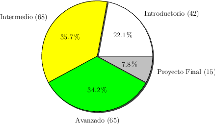 Esta propuesta puede ser analizada por el número de créditos dedicados a cada área y por niveles de cursos (Introductorios, Intermedios, Avanzados y Proyectos).